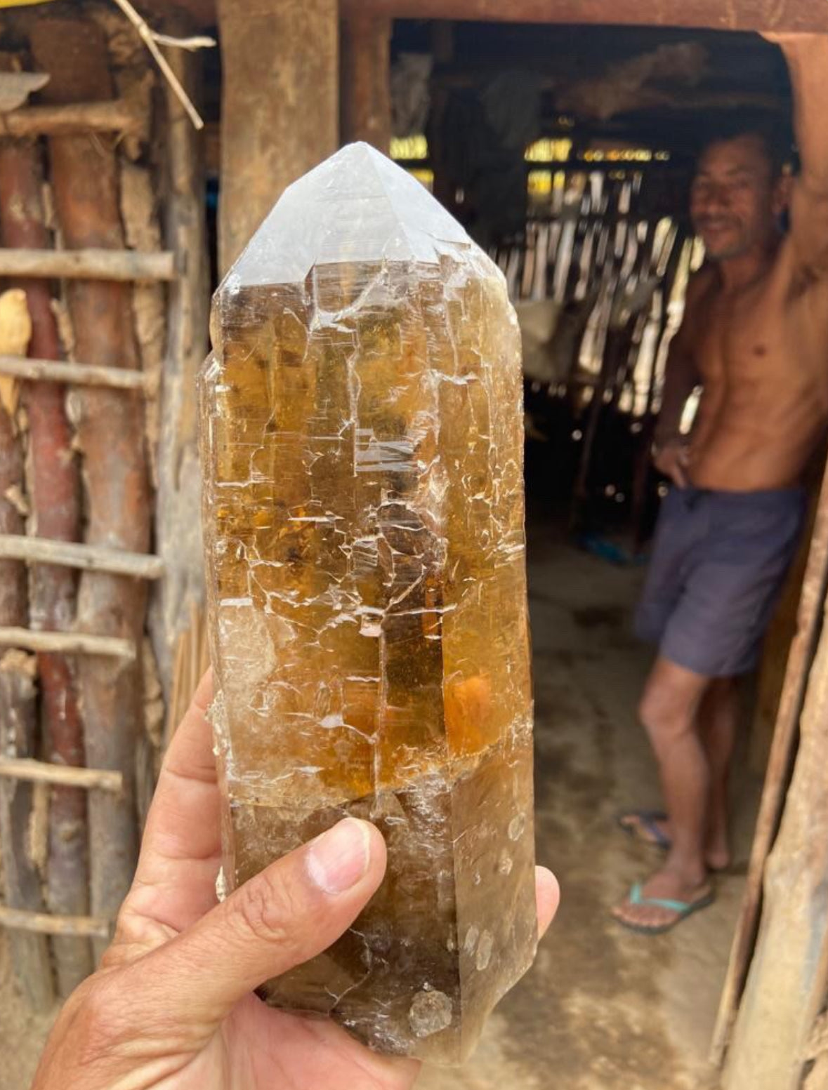 This orange Dreamcoat Lemurian is from the very first mine run of the "oranges". I am offering this from my own personal archival collection. She is a large statement piece for the average size of a dreamcoat lemurian. Completely natural and unpolished, as Mother Earth created her!