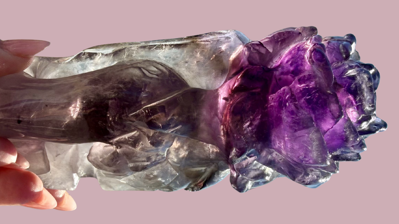 What makes this piece even more exceptional is its fusion of smoky and amethyst zoning. This dual coloration forms when trace amounts of iron within quartz undergo varying levels of natural irradiation, producing soft violets intertwined with protective smoky tones. It’s a phenomenon of both chemistry and time: an alchemy that cannot be replicated.