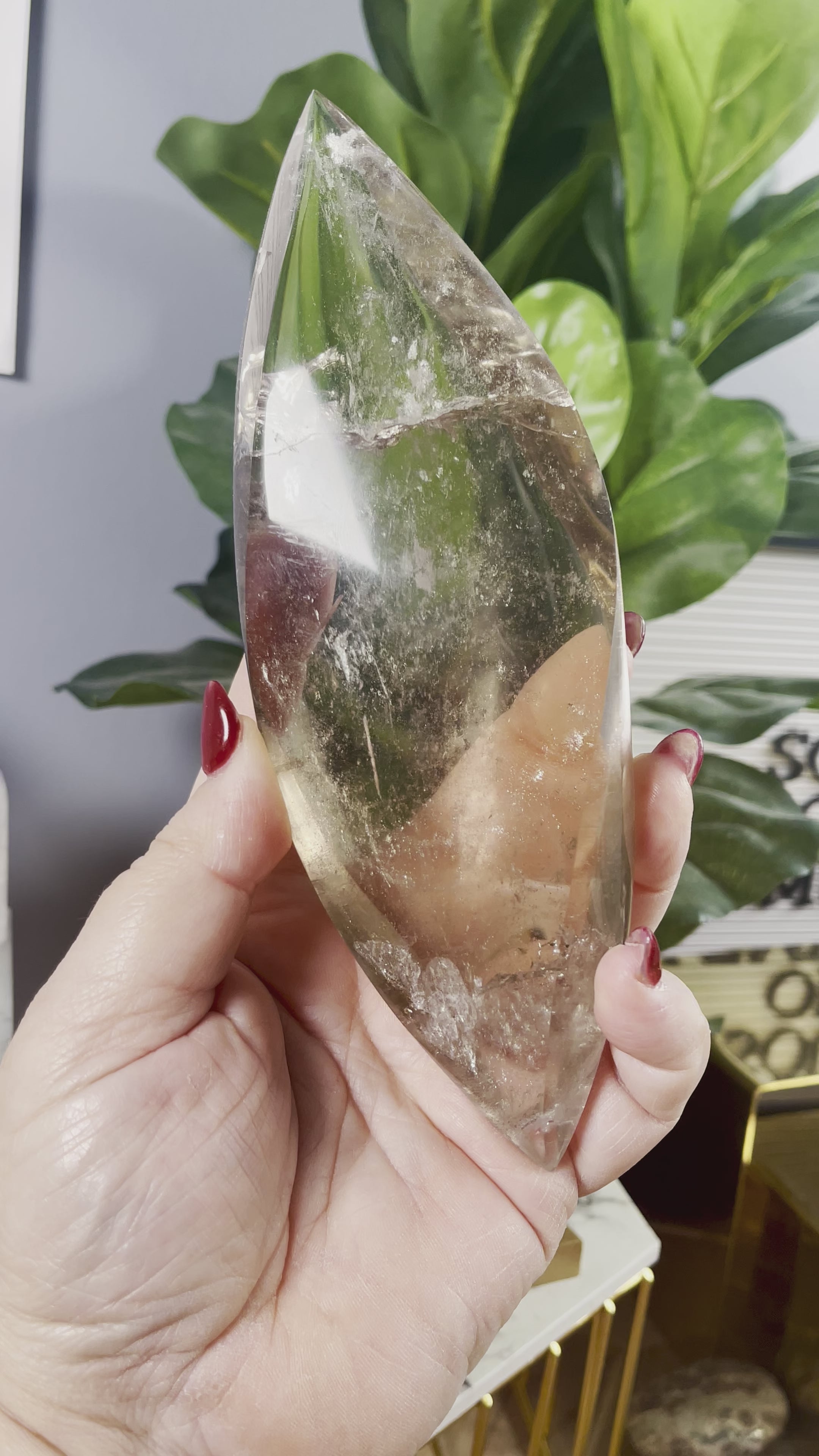 Flame Shape | Flames represent the earths element of fire, and are said to be able to assist in helping one find their own inner fire/flame. This flame is shaped so that it is double terminated. The "twist" of the flame is intended so that a person working with this crystal can use it by holding it in both hands over your heart or solar plexus. Flames are helpful if you find yourself struggling with confidence or procrastination, as well as finding your own inner fire as mentioned above. Flame shapes are also known to awaken your Kundalini and accelerate your ascension process.