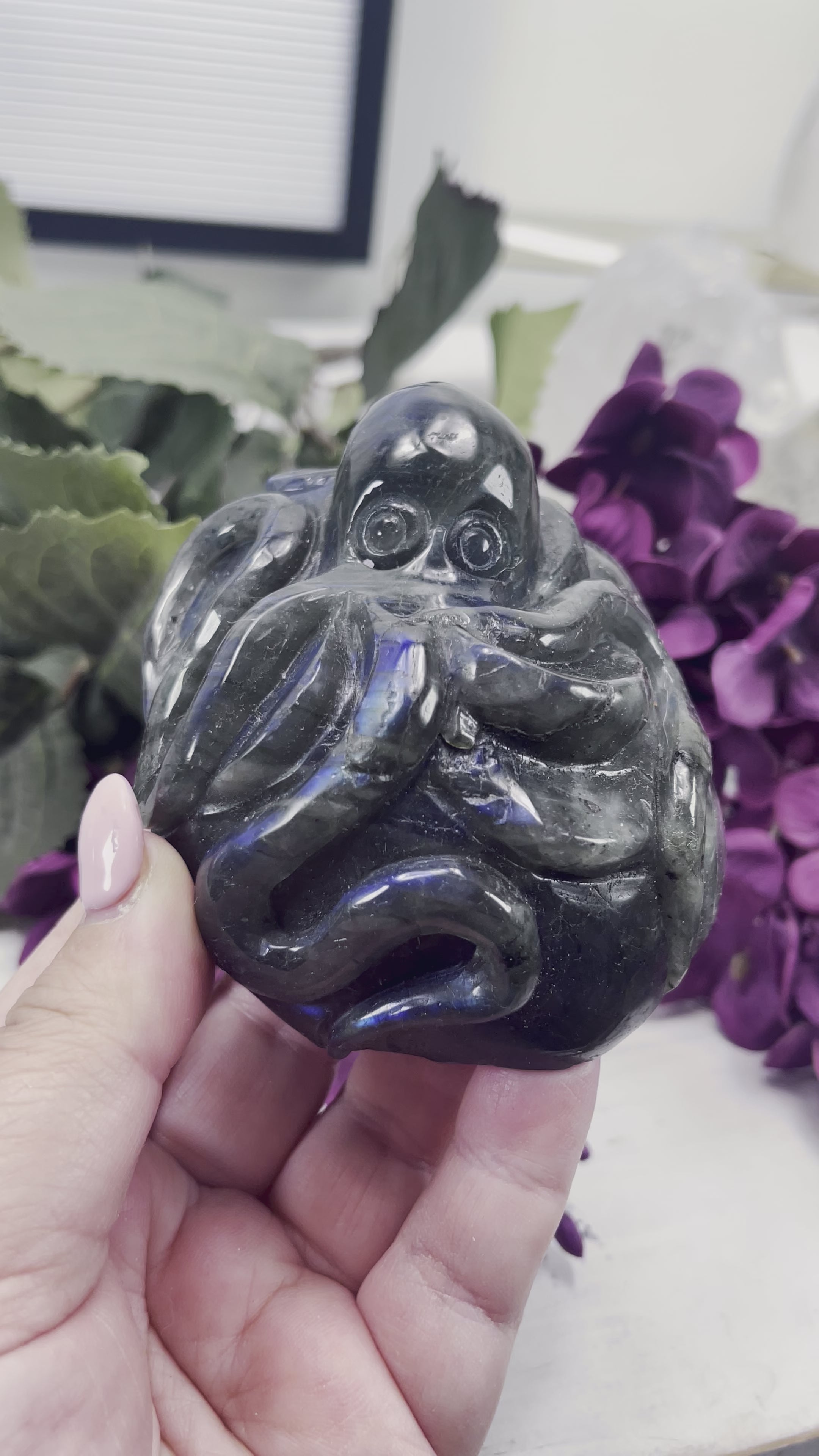 Metaphysical | Labradorite's healing properties are linked with the crown chakra, the energy center that governs spiritual expansion and higher levels of the mind and spirit. If you're looking to expand your mind and increase your spiritual growth, Labradorite can connect you to higher realms of consciousness. Additionally, in the metaphysical world, Labradorite is considered one of the most powerful protectors. The gemstone creates a shield for auras and protects against negativity of the world. What we love most about Labradorite is that it is a reminder to "keep it magical" by linking us to higher dimensions where anything is possible. Other stones keep us anchored to the earth with their powerful grounding effects while Labradorite encourages us to keep our head in the clouds. It bridges the gap between the heavens and physical reality so that your dreams and aspirations don’t seem out of reach. In this way, Labradorite is one of the most powerful stones that can support your intentions by encouraging you to go after what you truly want without placing any limits on what you can achieve.