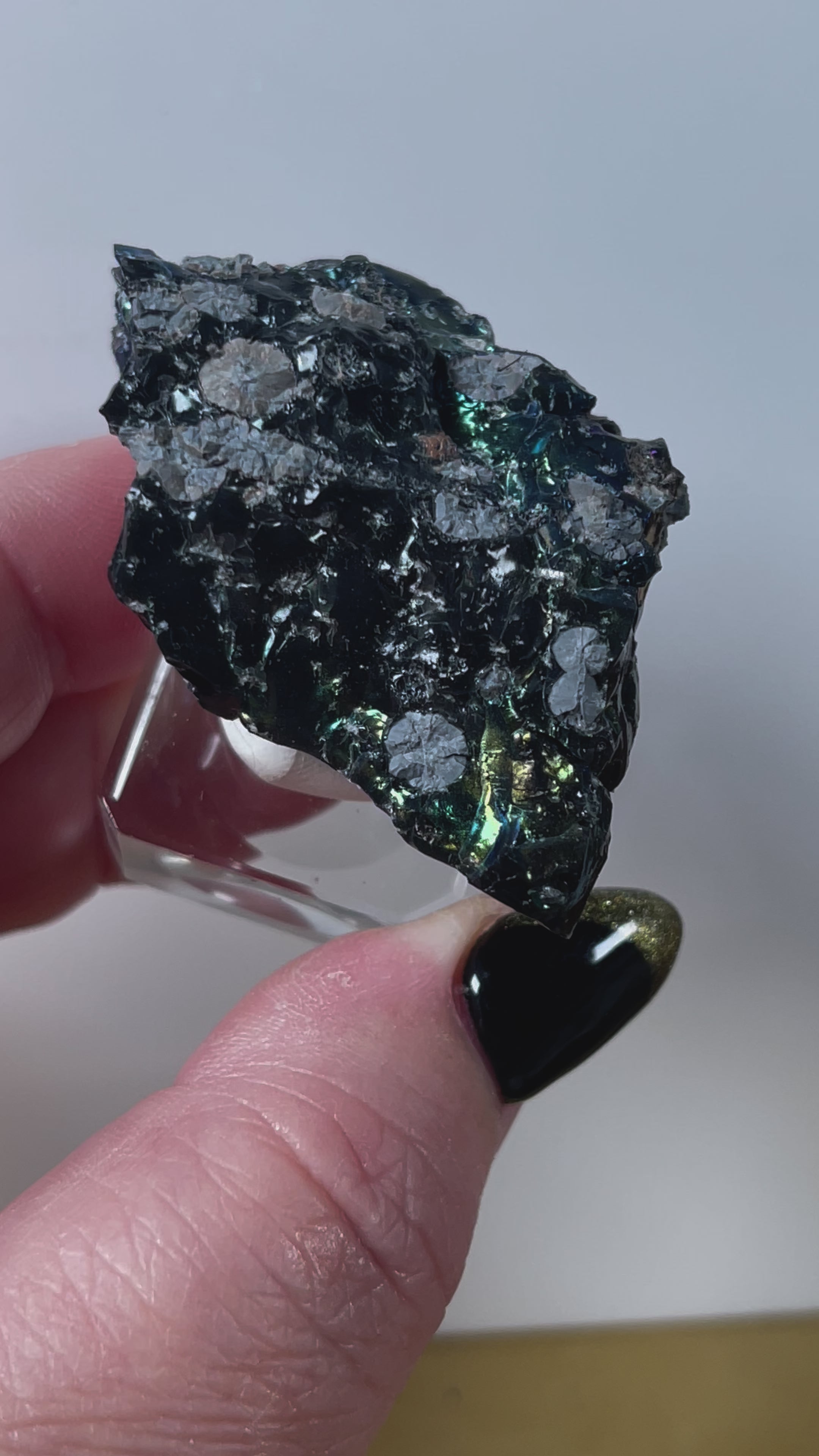 Material | These are 100% natural. Rainbow Snowflake Obsidian is a rare mineral and very hard to come by. The iridescence comes from magnetite nanoparticles. The "snowflake" inclusion is cristobalite.