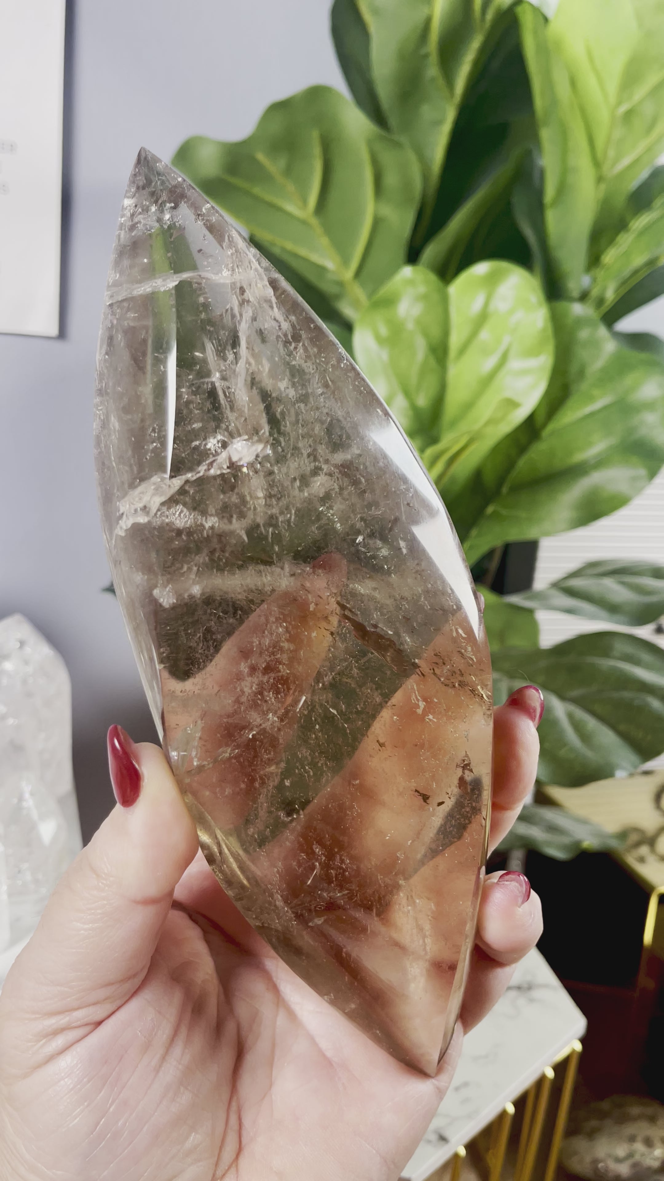 Flame Shape | Flames represent the earths element of fire, and are said to be able to assist in helping one find their own inner fire/flame. This flame is shaped so that it is double terminated. The "twist" of the flame is intended so that a person working with this crystal can use it by holding it in both hands over your heart or solar plexus. Flames are helpful if you find yourself struggling with confidence or procrastination, as well as finding your own inner fire as mentioned above. Flame shapes are also known to awaken your Kundalini and accelerate your ascension process.